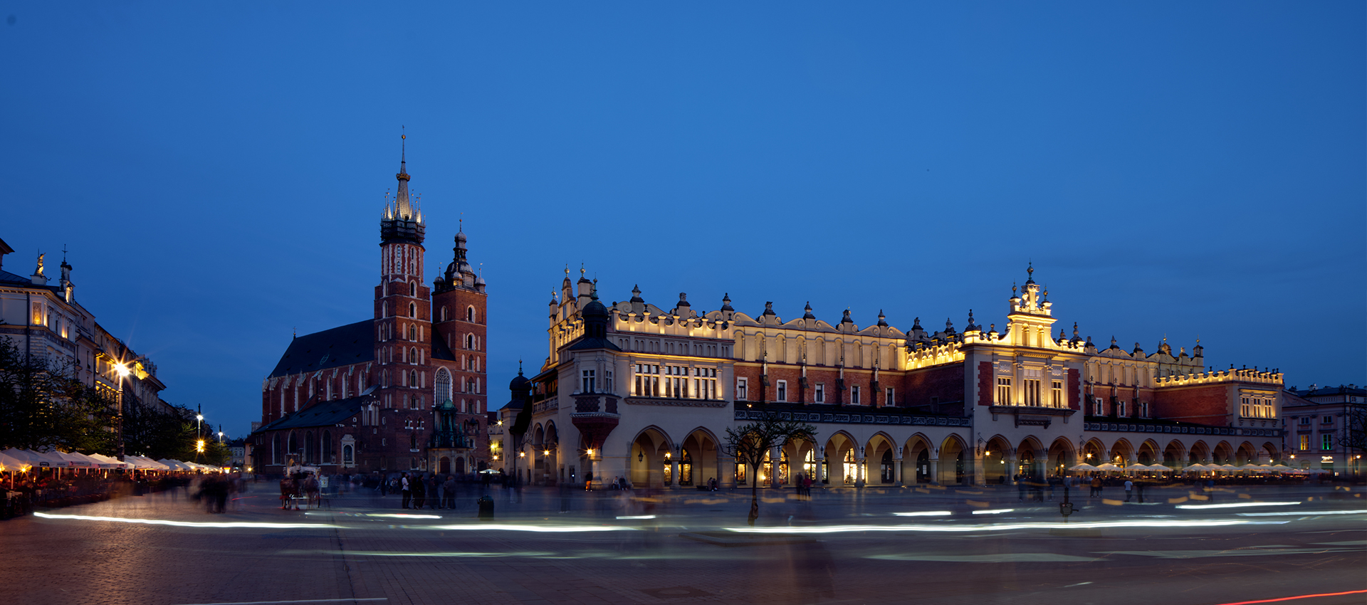 The Kraków Market Square was laid out in 1257 during the establishment of the city under Magdeburg Law. Its monumental dimensions, 200 by 200 meters, make it one of the largest town squares in Europe. Over the centuries, it has witnessed many key historical events, such as royal coronations, important state and religious ceremonies, as well as tragic moments, including invasions and destruction. In the Middle Ages, the Market Square was the main trading hub where merchants from all over the world gathered to exchange goods, news, and experiences. The central point of the square has always been the Cloth Hall (Sukiennice), which served as a trading hall and today houses a museum and numerous souvenir shops. It is also worth mentioning the Town Hall, which for centuries dominated the square, with its tower being the only remaining part of the building demolished in the 19th century.